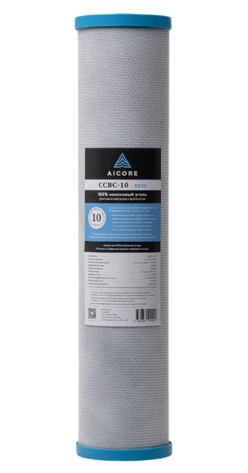 Сменный фильтрующий элемент AICORE CCBC-10 BB20 эффективен для очистки холодной воды от хлорорганических соединений, он представляет собой полноценный этап фильтрации для питьевых фильтров, после картриджа от механических примесей.