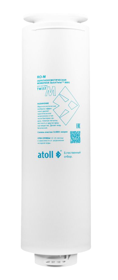 Мембрана Atoll TWIST RO-M для системы обратного осмоса Atoll TWIST M удаляет самые мельчайшие и вредные загрязнения, такие как вирусы, жесткость и другие растворенные соли, тяжёлые металлы, пестициды.
