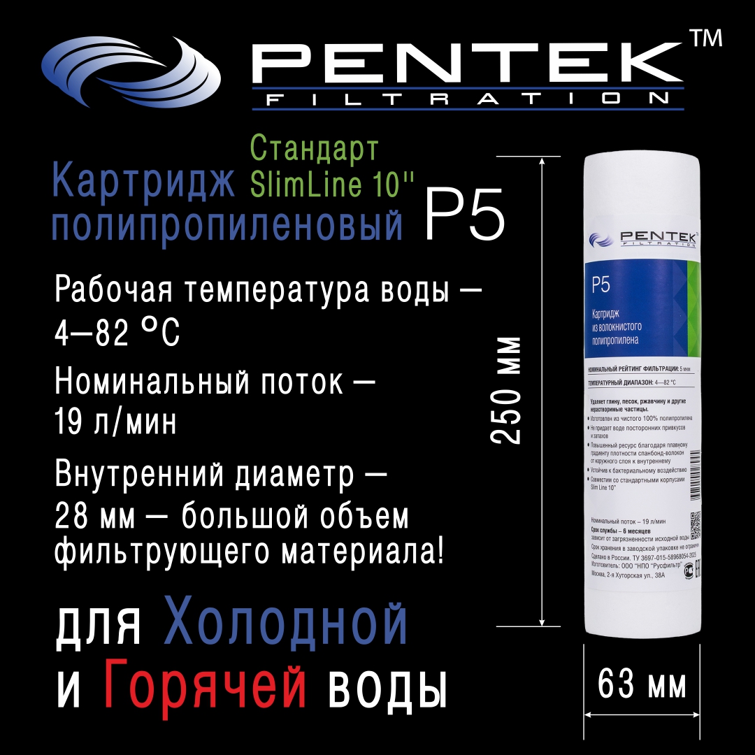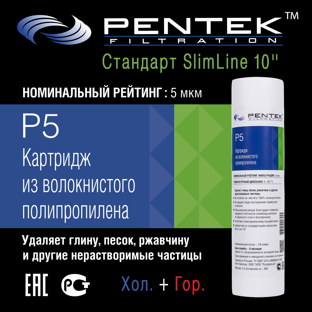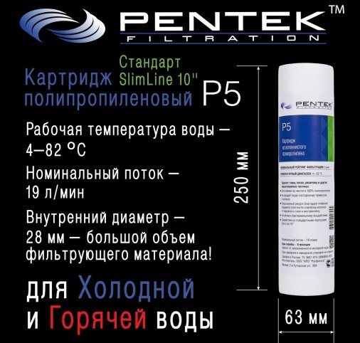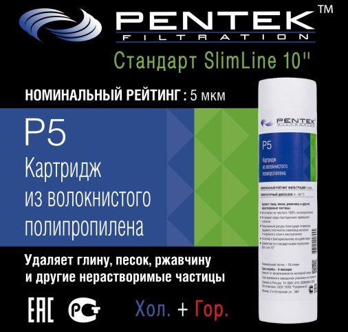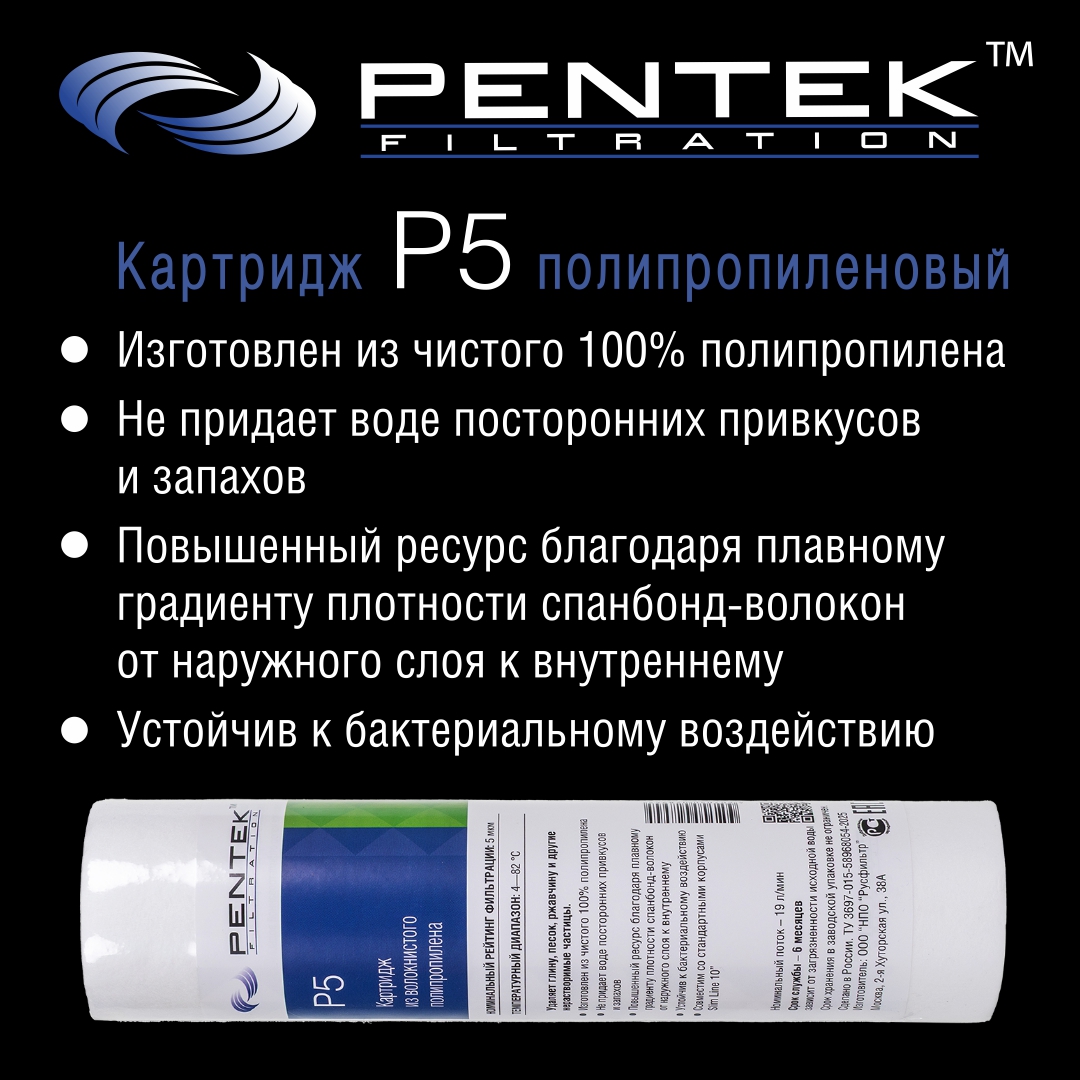 Картридж Pentek Filtration P5 изготовлен из чистого полипропилена.
