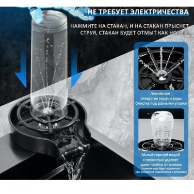 Выдвижной смеситель с высоким поворотным изливом, работает в трех режимах: душ, струя, водопад.