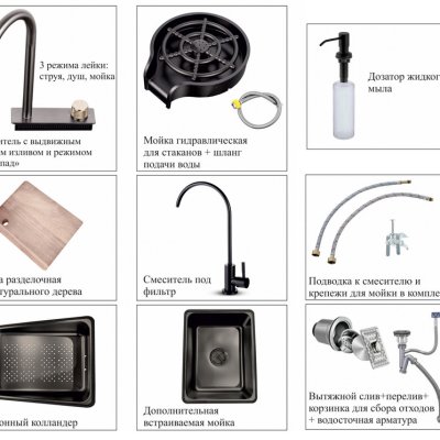 Комплект поставки мойки ZORG MASTER ZM 7546 GRAFIT: