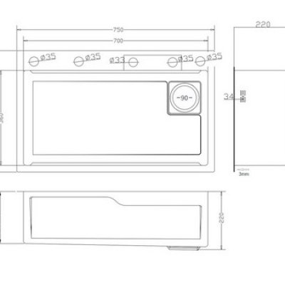 Верхняя пластина кухонной мойки имеет толщину стали 3 мм, что придает жесткость конструкции.