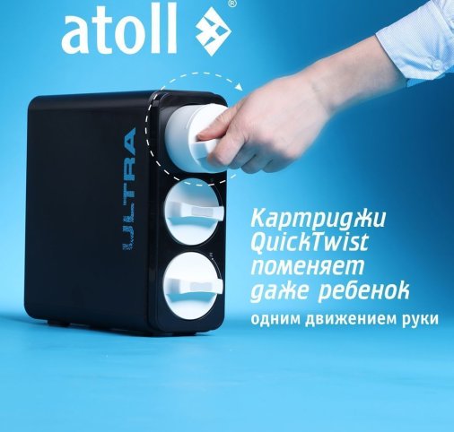 - atoll ULTRA прост в обслуживании: замена картриджей производится по системе QuickTwist – одним движением руки.